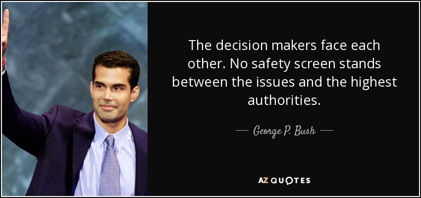 The decision makers face each other. No safety screen stands between the issues and the highest authorities.