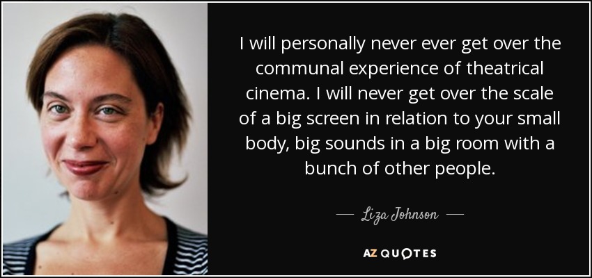 I will personally never ever get over the communal experience of theatrical cinema. I will never get over the scale of a big screen in relation to your small body, big sounds in a big room with a bunch of other people.