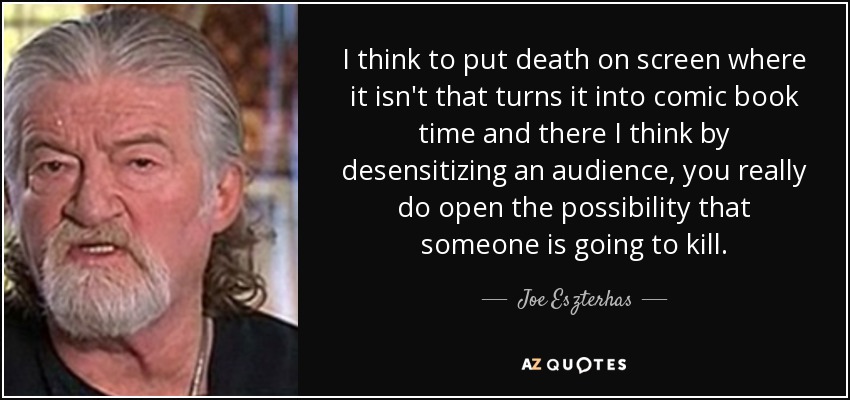 I think to put death on screen where it isn't that turns it into comic book time and there I think by desensitizing an audience, you really do open the possibility that someone is going to kill.