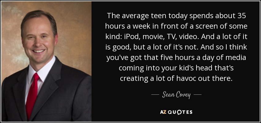 The average teen today spends about 35 hours a week in front of a screen of some kind: iPod, movie, TV, video. And a lot of it is good, but a lot of it's not. And so I think you've got that five hours a day of media coming into your kid's head that's creating a lot of havoc out there.
