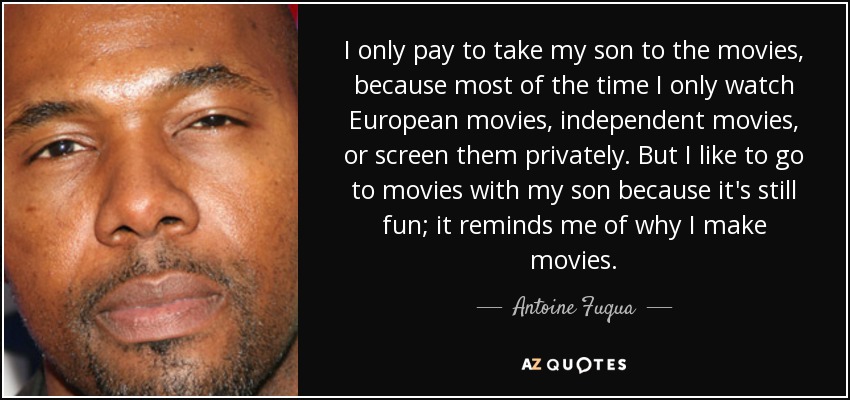 I only pay to take my son to the movies, because most of the time I only watch European movies, independent movies, or screen them privately. But I like to go to movies with my son because it's still fun; it reminds me of why I make movies.