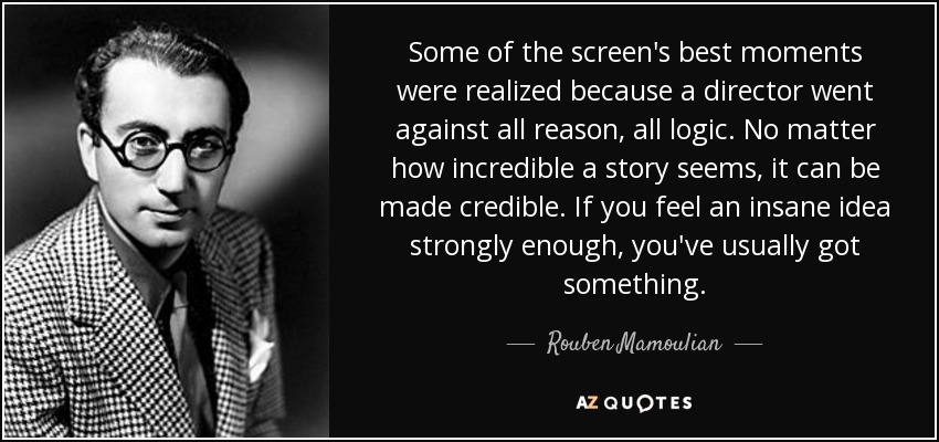 Some of the screen's best moments were realized because a director went against all reason, all logic. No matter how incredible a story seems, it can be made credible. If you feel an insane idea strongly enough, you've usually got something.