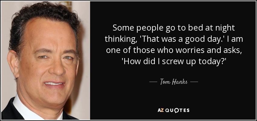 Some people go to bed at night thinking, 'That was a good day.' I am one of those who worries and asks, 'How did I screw up today?'