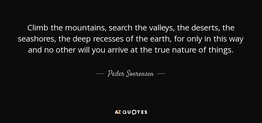 Climb the mountains, search the valleys, the deserts, the seashores, the deep recesses of the earth, for only in this way and no other will you arrive at the true nature of things.