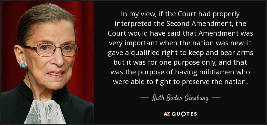 In my view, if the Court had properly interpreted the Second Amendment, the Court would have said that Amendment was very important when the nation was new, it gave a qualified right to keep and bear arms but it was for one purpose only, and that was the purpose of having militiamen who were able to fight to preserve the nation.
