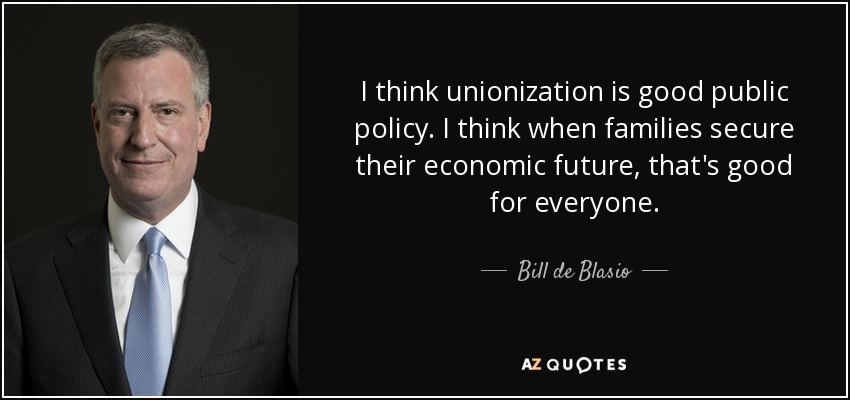 I think unionization is good public policy. I think when families secure their economic future, that's good for everyone.