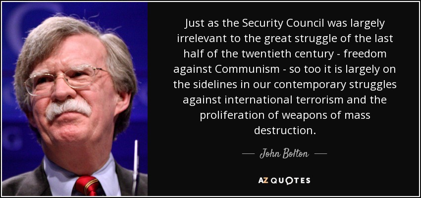Just as the Security Council was largely irrelevant to the great struggle of the last half of the twentieth century - freedom against Communism - so too it is largely on the sidelines in our contemporary struggles against international terrorism and the proliferation of weapons of mass destruction.