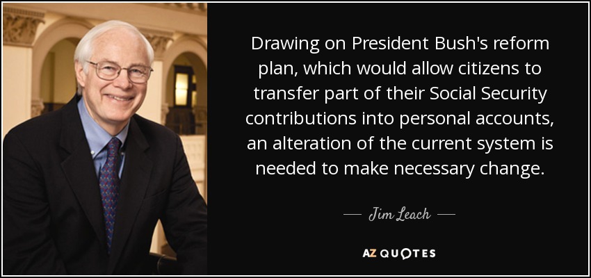 Drawing on President Bush's reform plan, which would allow citizens to transfer part of their Social Security contributions into personal accounts, an alteration of the current system is needed to make necessary change.