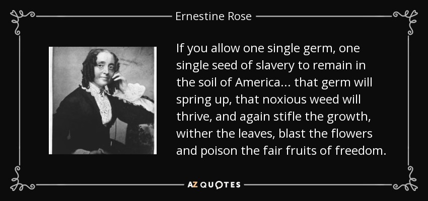 If you allow one single germ, one single seed of slavery to remain in the soil of America... that germ will spring up, that noxious weed will thrive, and again stifle the growth, wither the leaves, blast the flowers and poison the fair fruits of freedom.