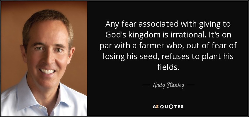 Any fear associated with giving to God's kingdom is irrational. It's on par with a farmer who, out of fear of losing his seed, refuses to plant his fields.