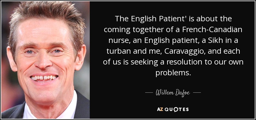 The English Patient' is about the coming together of a French-Canadian nurse, an English patient, a Sikh in a turban and me, Caravaggio, and each of us is seeking a resolution to our own problems.