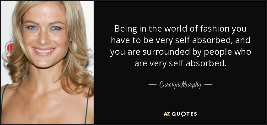 Being in the world of fashion you have to be very self-absorbed, and you are surrounded by people who are very self-absorbed.