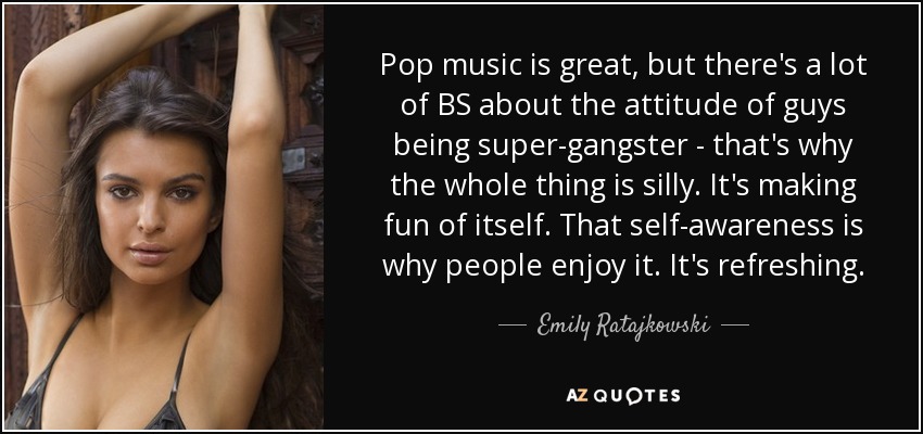 Pop music is great, but there's a lot of BS about the attitude of guys being super-gangster - that's why the whole thing is silly. It's making fun of itself. That self-awareness is why people enjoy it. It's refreshing.