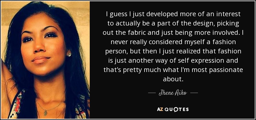 I guess I just developed more of an interest to actually be a part of the design, picking out the fabric and just being more involved. I never really considered myself a fashion person, but then I just realized that fashion is just another way of self expression and that's pretty much what I'm most passionate about.