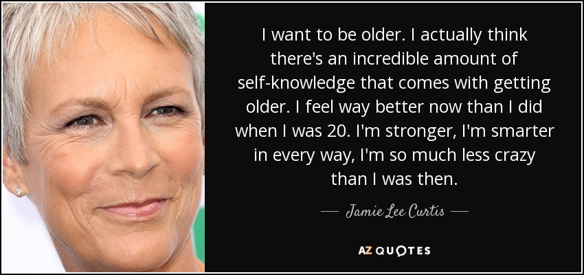 I want to be older. I actually think there's an incredible amount of self-knowledge that comes with getting older. I feel way better now than I did when I was 20. I'm stronger, I'm smarter in every way, I'm so much less crazy than I was then.