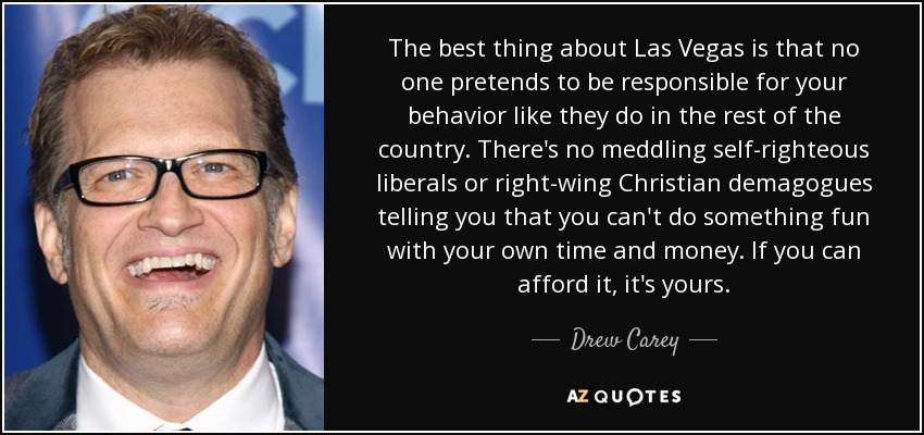 The best thing about Las Vegas is that no one pretends to be responsible for your behavior like they do in the rest of the country. There's no meddling self-righteous liberals or right-wing Christian demagogues telling you that you can't do something fun with your own time and money. If you can afford it, it's yours.