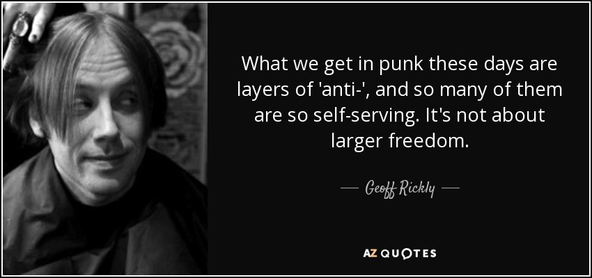 What we get in punk these days are layers of 'anti-', and so many of them are so self-serving. It's not about larger freedom.