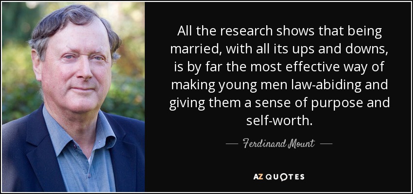 All the research shows that being married, with all its ups and downs, is by far the most effective way of making young men law-abiding and giving them a sense of purpose and self-worth.