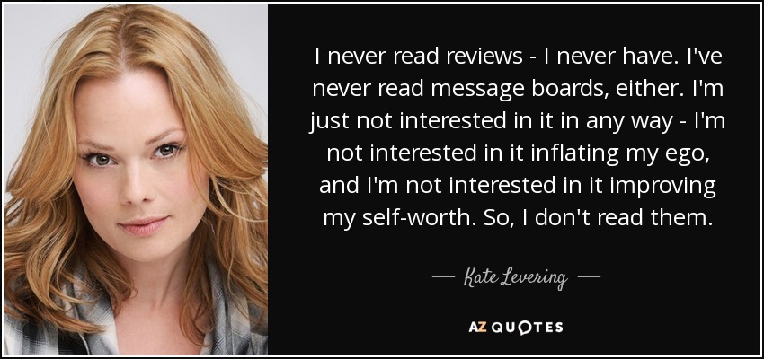 I never read reviews - I never have. I've never read message boards, either. I'm just not interested in it in any way - I'm not interested in it inflating my ego, and I'm not interested in it improving my self-worth. So, I don't read them.