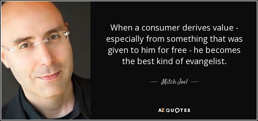 When a consumer derives value - especially from something that was given to him for free - he becomes the best kind of evangelist.