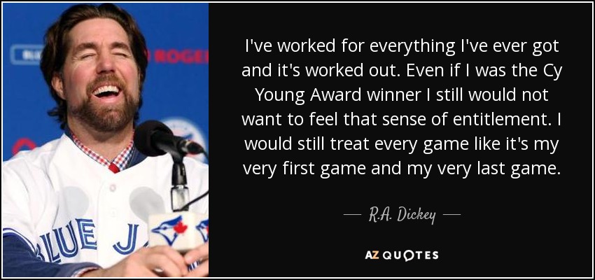 I've worked for everything I've ever got and it's worked out. Even if I was the Cy Young Award winner I still would not want to feel that sense of entitlement. I would still treat every game like it's my very first game and my very last game.
