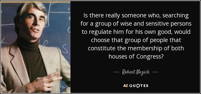 Is there really someone who, searching for a group of wise and sensitive persons to regulate him for his own good, would choose that group of people that constitute the membership of both houses of Congress?