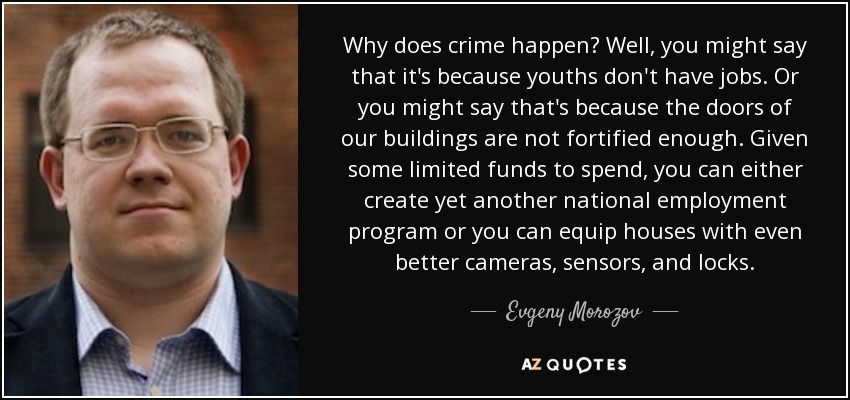 Why does crime happen? Well, you might say that it's because youths don't have jobs. Or you might say that's because the doors of our buildings are not fortified enough. Given some limited funds to spend, you can either create yet another national employment program or you can equip houses with even better cameras, sensors, and locks.