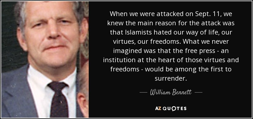 When we were attacked on Sept. 11, we knew the main reason for the attack was that Islamists hated our way of life, our virtues, our freedoms. What we never imagined was that the free press - an institution at the heart of those virtues and freedoms - would be among the first to surrender.