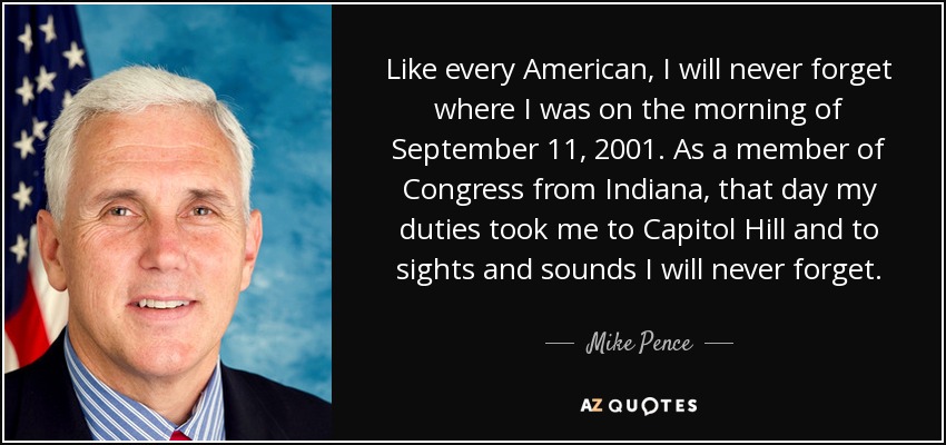 Like every American, I will never forget where I was on the morning of September 11, 2001. As a member of Congress from Indiana, that day my duties took me to Capitol Hill and to sights and sounds I will never forget.