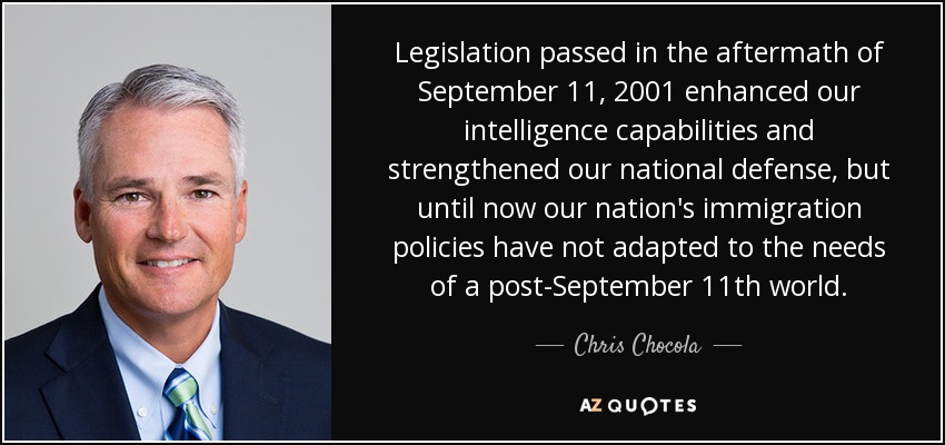 Legislation passed in the aftermath of September 11, 2001 enhanced our intelligence capabilities and strengthened our national defense, but until now our nation's immigration policies have not adapted to the needs of a post-September 11th world.