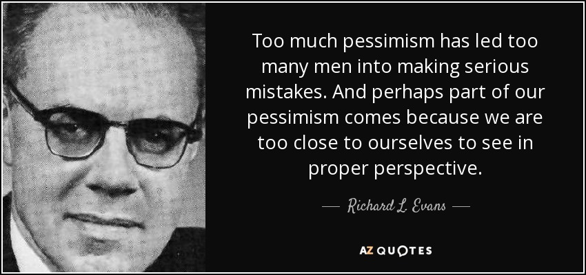 Too much pessimism has led too many men into making serious mistakes. And perhaps part of our pessimism comes because we are too close to ourselves to see in proper perspective.