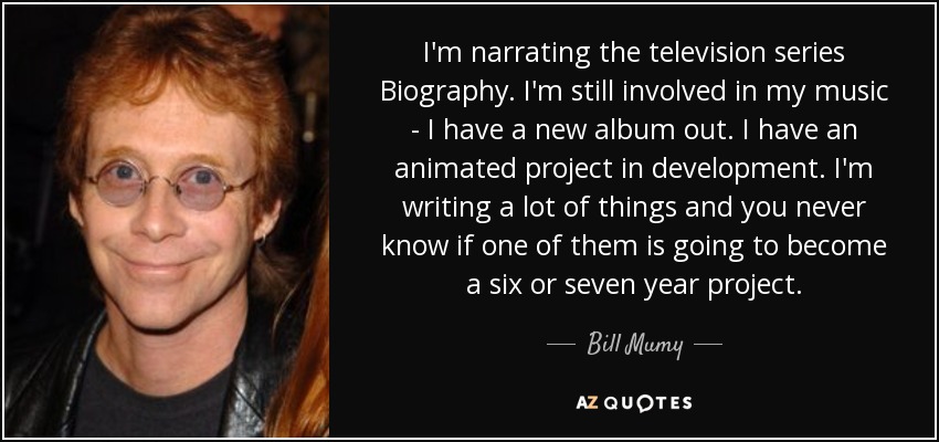I'm narrating the television series Biography. I'm still involved in my music - I have a new album out. I have an animated project in development. I'm writing a lot of things and you never know if one of them is going to become a six or seven year project.