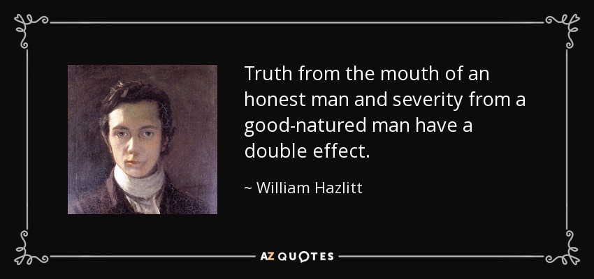 Truth from the mouth of an honest man and severity from a good-natured man have a double effect.
