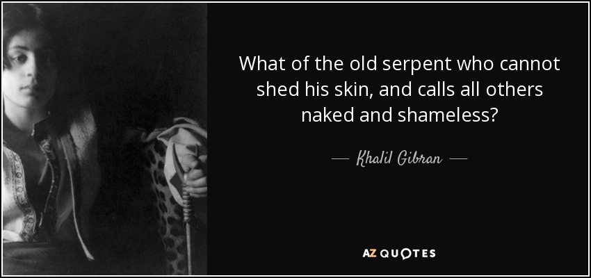 What of the old serpent who cannot shed his skin, and calls all others naked and shameless?