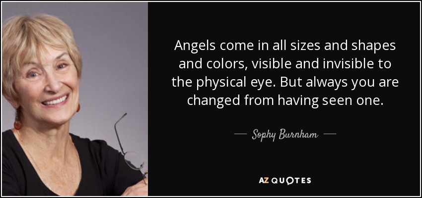 Angels come in all sizes and shapes and colors, visible and invisible to the physical eye. But always you are changed from having seen one.