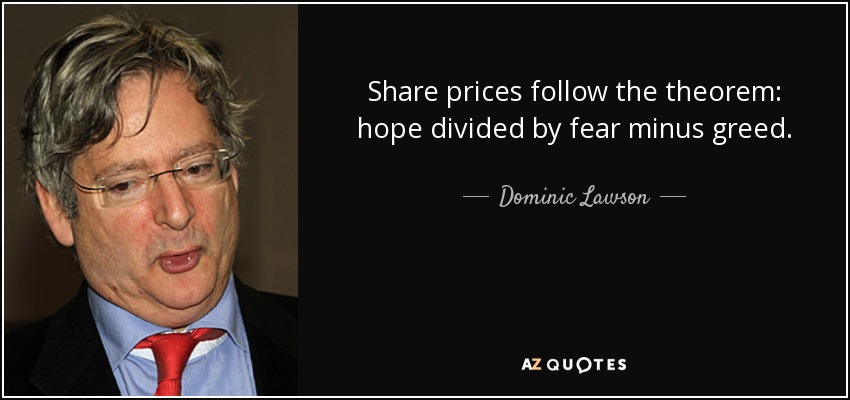 Share prices follow the theorem: hope divided by fear minus greed.