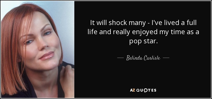 It will shock many - I've lived a full life and really enjoyed my time as a pop star.