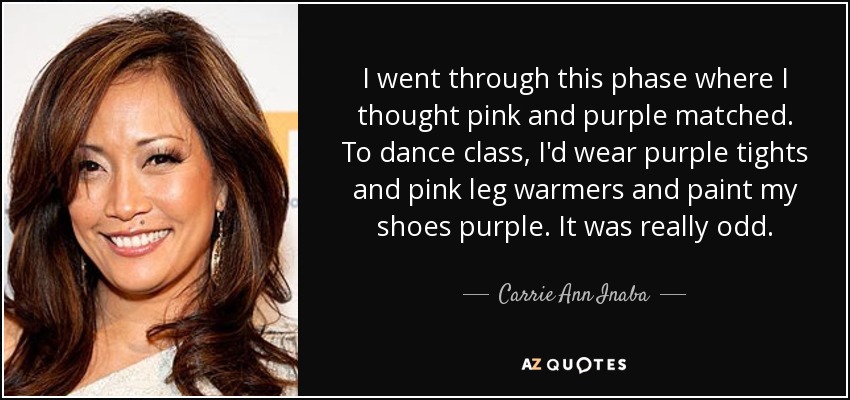 I went through this phase where I thought pink and purple matched. To dance class, I'd wear purple tights and pink leg warmers and paint my shoes purple. It was really odd.