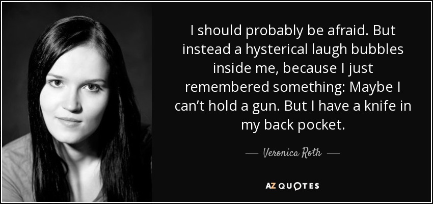 I should probably be afraid. But instead a hysterical laugh bubbles inside me, because I just remembered something: Maybe I can’t hold a gun. But I have a knife in my back pocket.