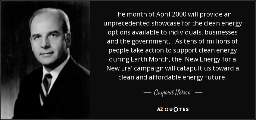 The month of April 2000 will provide an unprecedented showcase for the clean energy options available to individuals, businesses and the government, .. As tens of millions of people take action to support clean energy during Earth Month, the 'New Energy for a New Era' campaign will catapult us toward a clean and affordable energy future.