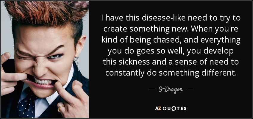 I have this disease-like need to try to create something new. When you're kind of being chased, and everything you do goes so well, you develop this sickness and a sense of need to constantly do something different.