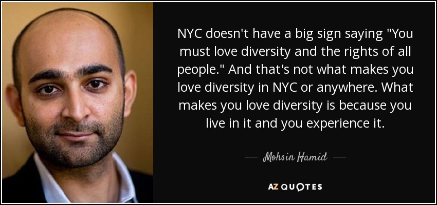 NYC doesn't have a big sign saying "You must love diversity and the rights of all people." And that's not what makes you love diversity in NYC or anywhere. What makes you love diversity is because you live in it and you experience it.
