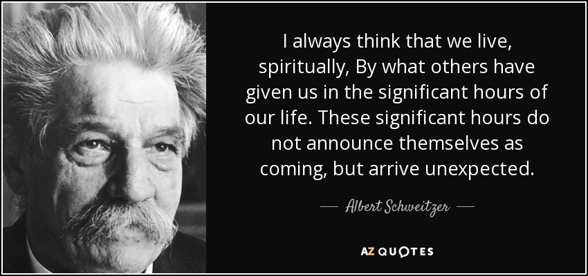 I always think that we live, spiritually, By what others have given us in the significant hours of our life. These significant hours do not announce themselves as coming, but arrive unexpected.