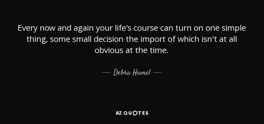 Every now and again your life's course can turn on one simple thing, some small decision the import of which isn't at all obvious at the time.