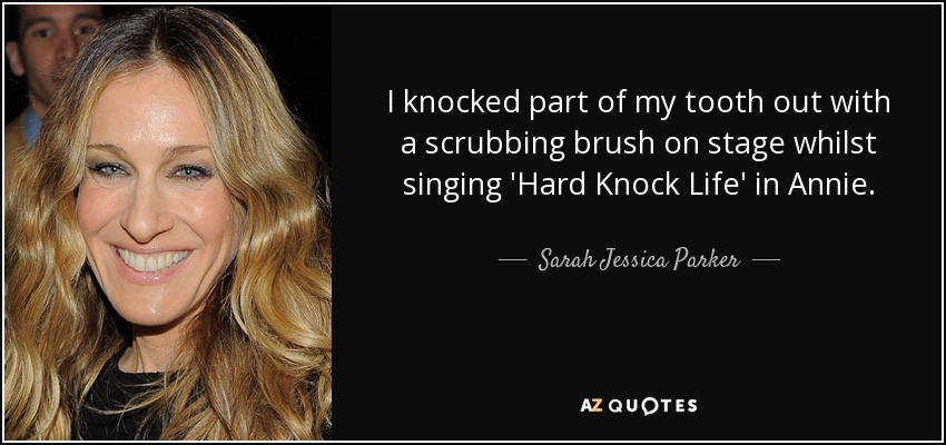 I knocked part of my tooth out with a scrubbing brush on stage whilst singing 'Hard Knock Life' in Annie.