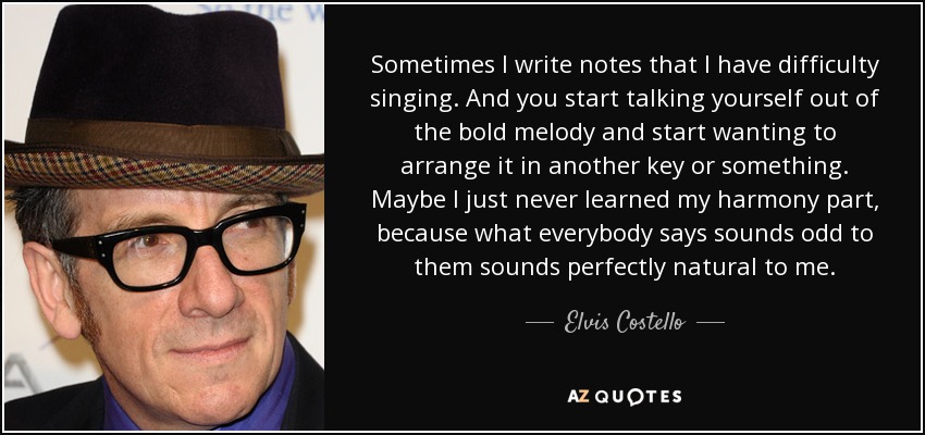 Sometimes I write notes that I have difficulty singing. And you start talking yourself out of the bold melody and start wanting to arrange it in another key or something. Maybe I just never learned my harmony part, because what everybody says sounds odd to them sounds perfectly natural to me.