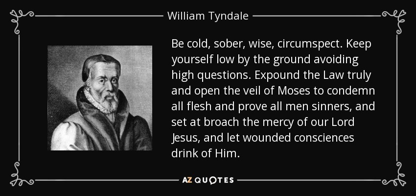 Be cold, sober, wise, circumspect. Keep yourself low by the ground avoiding high questions. Expound the Law truly and open the veil of Moses to condemn all flesh and prove all men sinners, and set at broach the mercy of our Lord Jesus, and let wounded consciences drink of Him.
