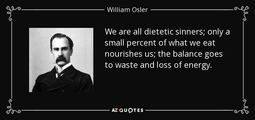 We are all dietetic sinners; only a small percent of what we eat nourishes us; the balance goes to waste and loss of energy.