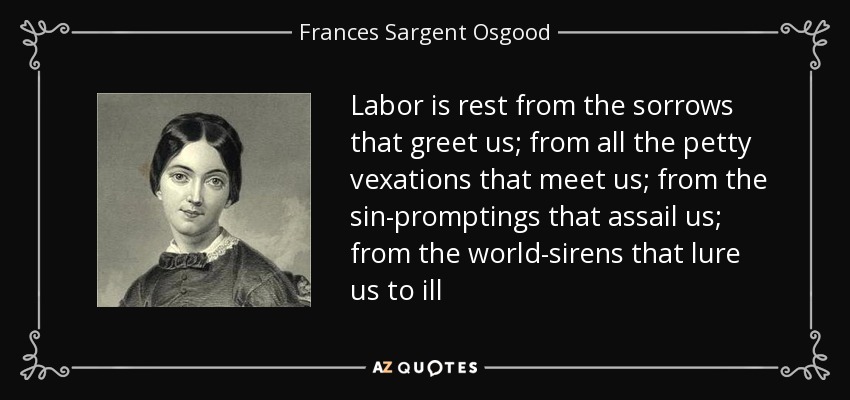 Labor is rest from the sorrows that greet us; from all the petty vexations that meet us; from the sin-promptings that assail us; from the world-sirens that lure us to ill