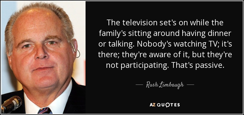 The television set's on while the family's sitting around having dinner or talking. Nobody's watching TV; it's there; they're aware of it, but they're not participating. That's passive.